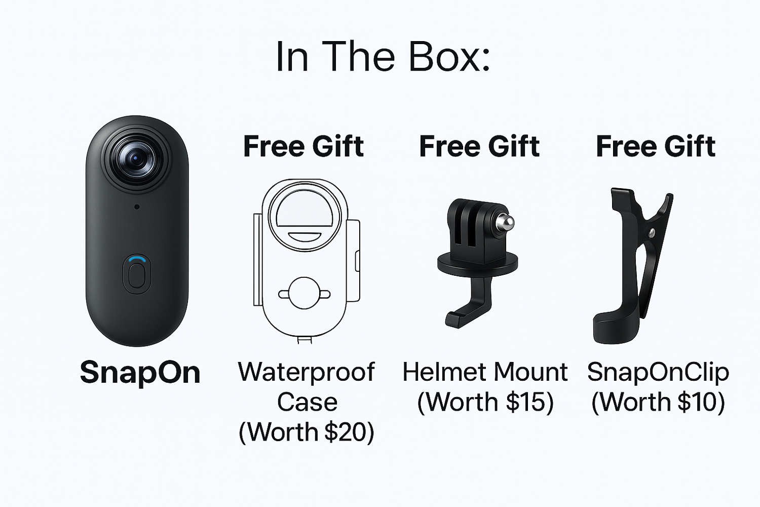 Each SnapOnā„¢ comes with 3 FREE accessories to help you capture every moment on the slopes! You’ll receive: